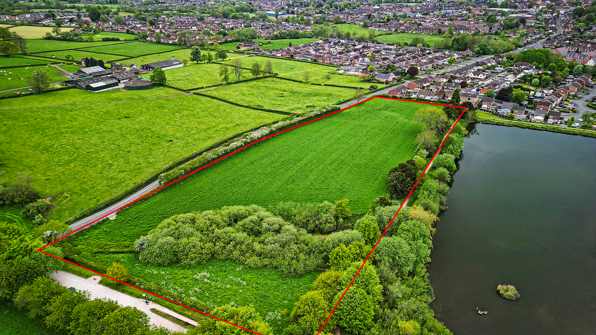 The Site is bounded by mature hedgerows with occasional hedgerow trees and lies within Flood Zone 1 (low probability of flooding). A small part of the Site forms part of Hales Hall Pool Local Nature Reserve, designated as a Site of Biological Importance (Cheadle Fish Ponds).